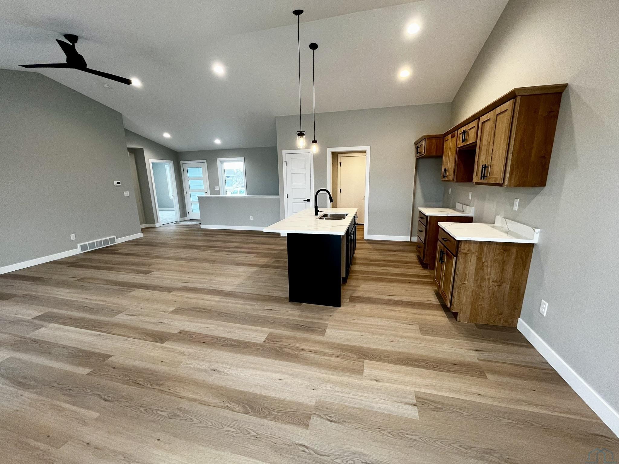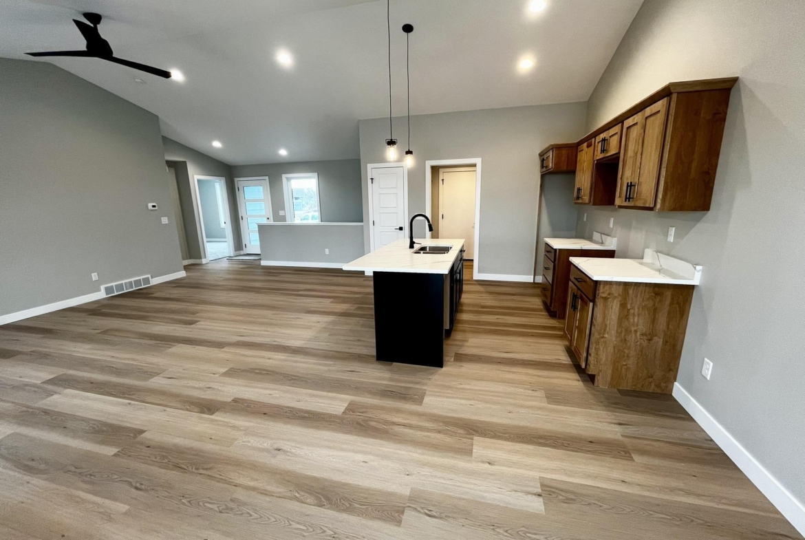 Great starter home with a finished basement! 4 bedroom, 3 bath ranch new construction. The main floor boasts an open concept with vaulted ceilings. In the kitchen, you’ll find a large island, granite countertops and pantry. Main floor laundry too! The master has a 3/4 bath and walk in closet. The bedroom on the main has a large double closet. The basement has a large family room, two bedrooms and full bath with plenty of storage! This home also has a large 3 stall garage!