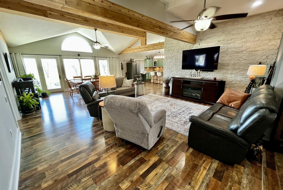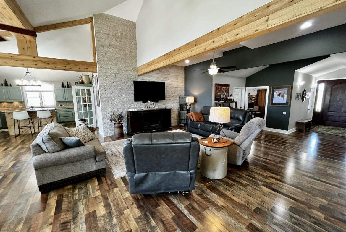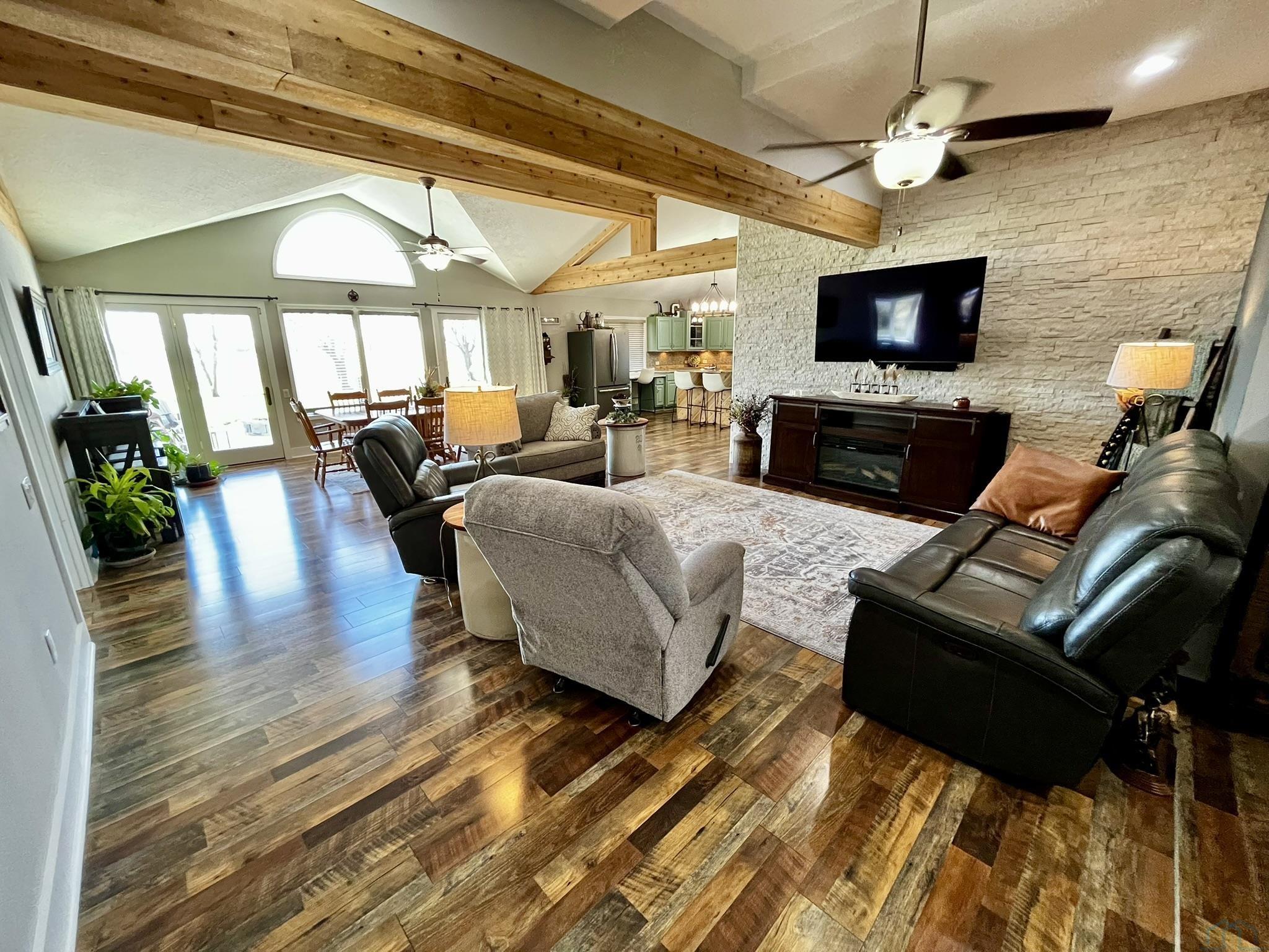 Enjoy the perfect blend of country living and modern updates with this recently remodeled acreage just outside Elk Point. The entire home was thoughtfully remodeled in 2024, offering a move-in ready property with quality upgrades throughout. This spacious 5-bedroom, 3-bathroom home features a comfortable layout, including a master suite with a large tile shower and large walk-in closet. Major mechanical updates provide peace of mind, including a new furnace and heat pump A/C unit installed in July 2024, complete with both a humidifier and dehumidifier system, along with a new Marathon water heater 2023. The property has also seen significant exterior improvements. A new metal roof and gutter leaf guards were installed in 2024. A new well was also installed in summer 2025, along with a new automatic irrigation system watering a large portion of the lawn. The outdoor space has been enhanced with a new sidewalk from the front of the home to the backyard, leading to an expanded patio and fire pit area—perfect for relaxing or entertaining. A variety of fruit trees and perennial plants have been added to the landscaping throughout the property. This acreage also lends itself to be the perfect hobby farm with perimeter fencing, an automatic driveway gate, 5-bar pipe fence, and a Ritchie automatic livestock waterer. This well-maintained acreage offers modern updates, functional outdoor improvements, and plenty of space to enjoy rural living just minutes from Elk Point.