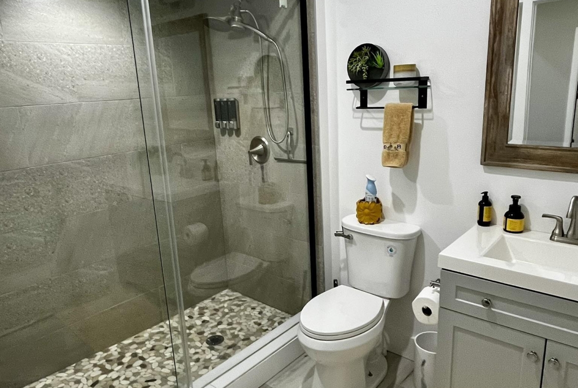 | 3/4 Bath | Main | 6'2X8'3 | vinyl plank floor, tile shower, custom glass shower door |