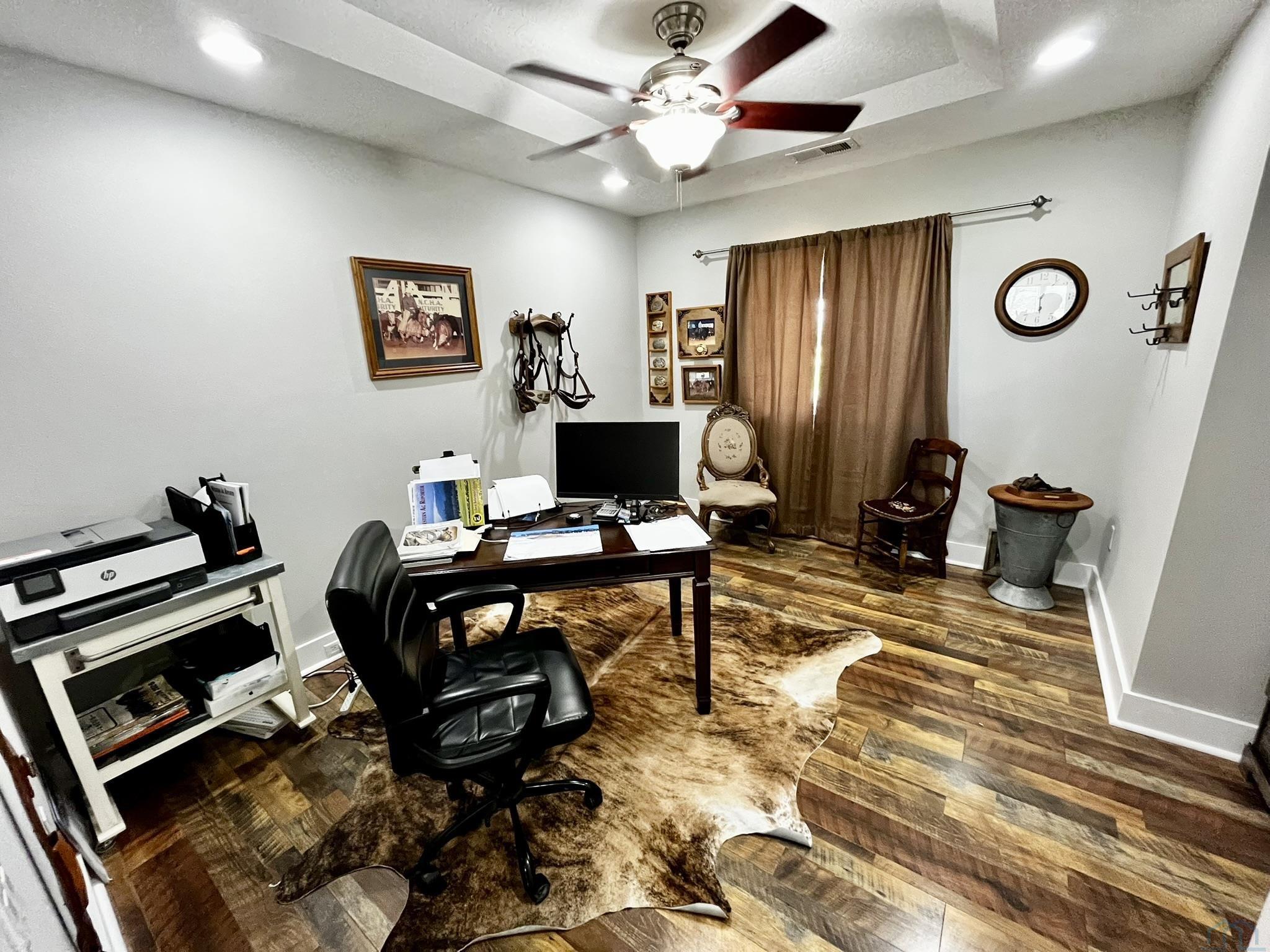 | Bedroom | Main | 12'6X12'10 | closet, tray ceiling, ceiling fan, used as a office |