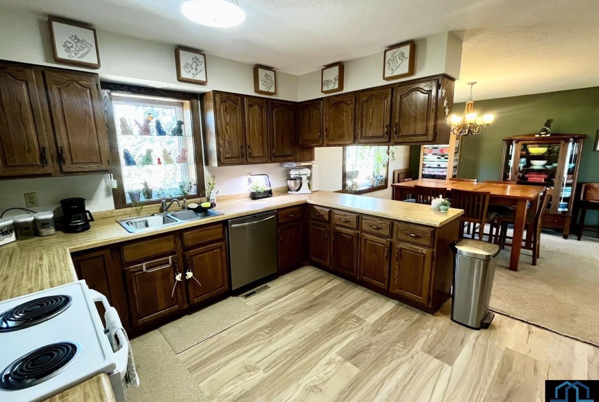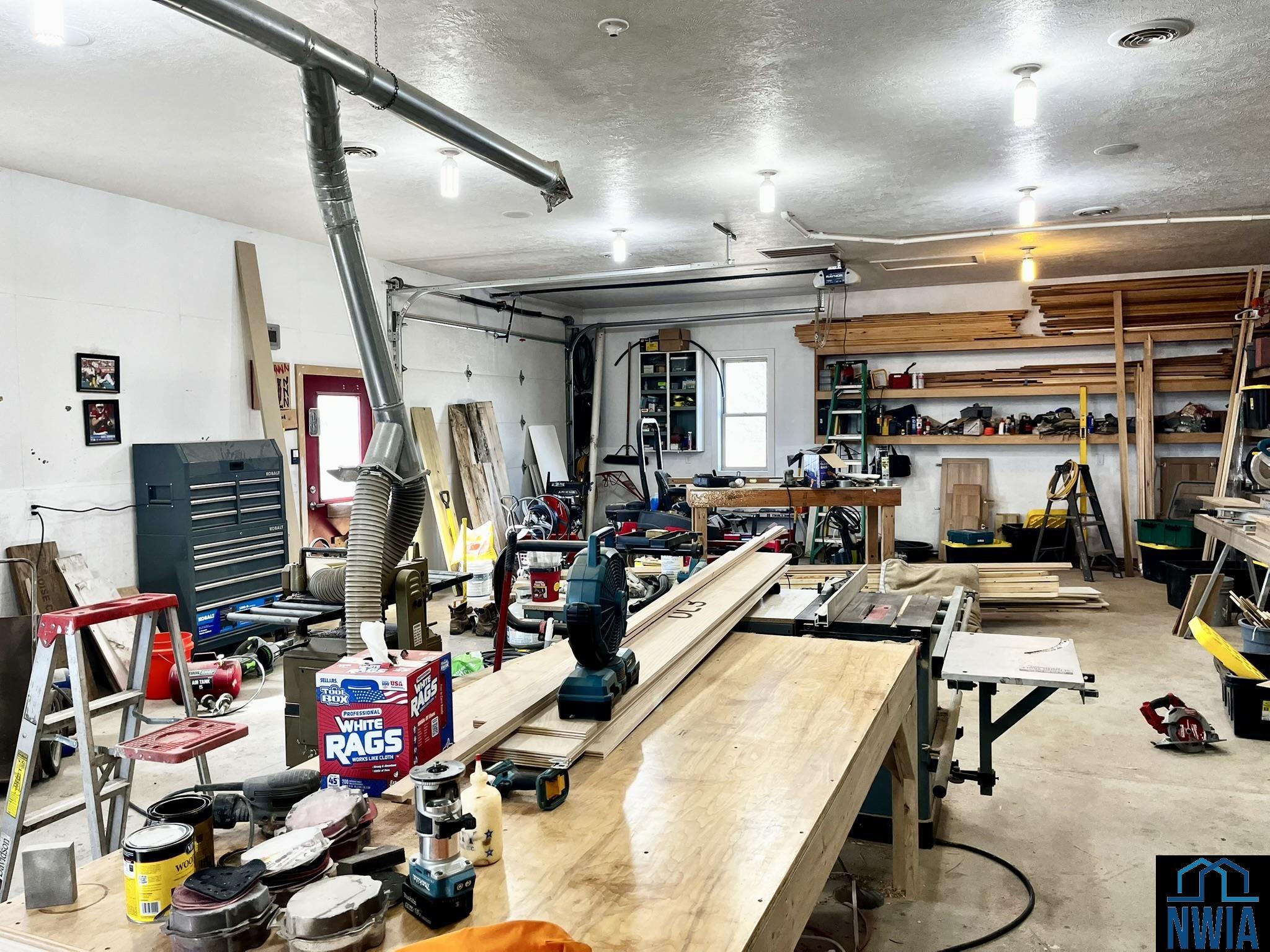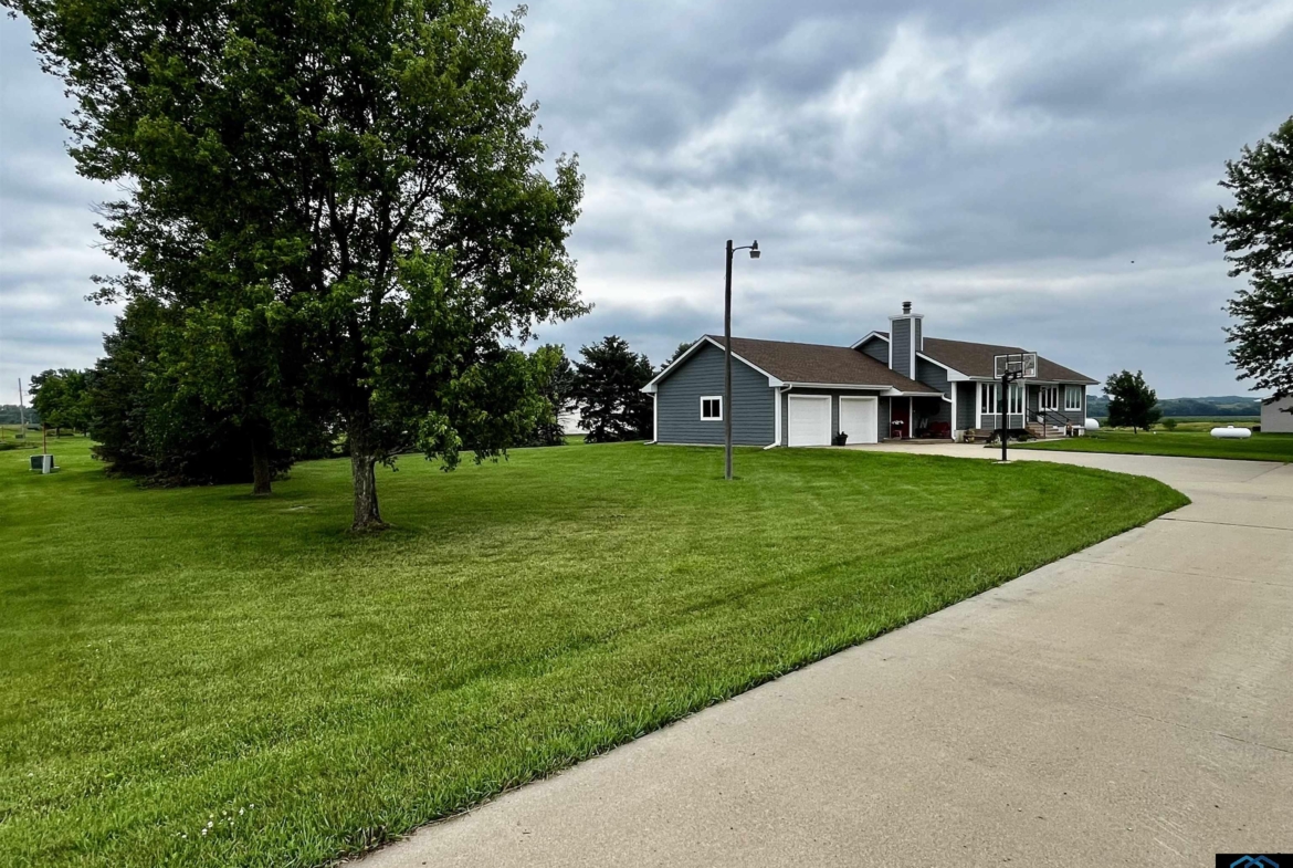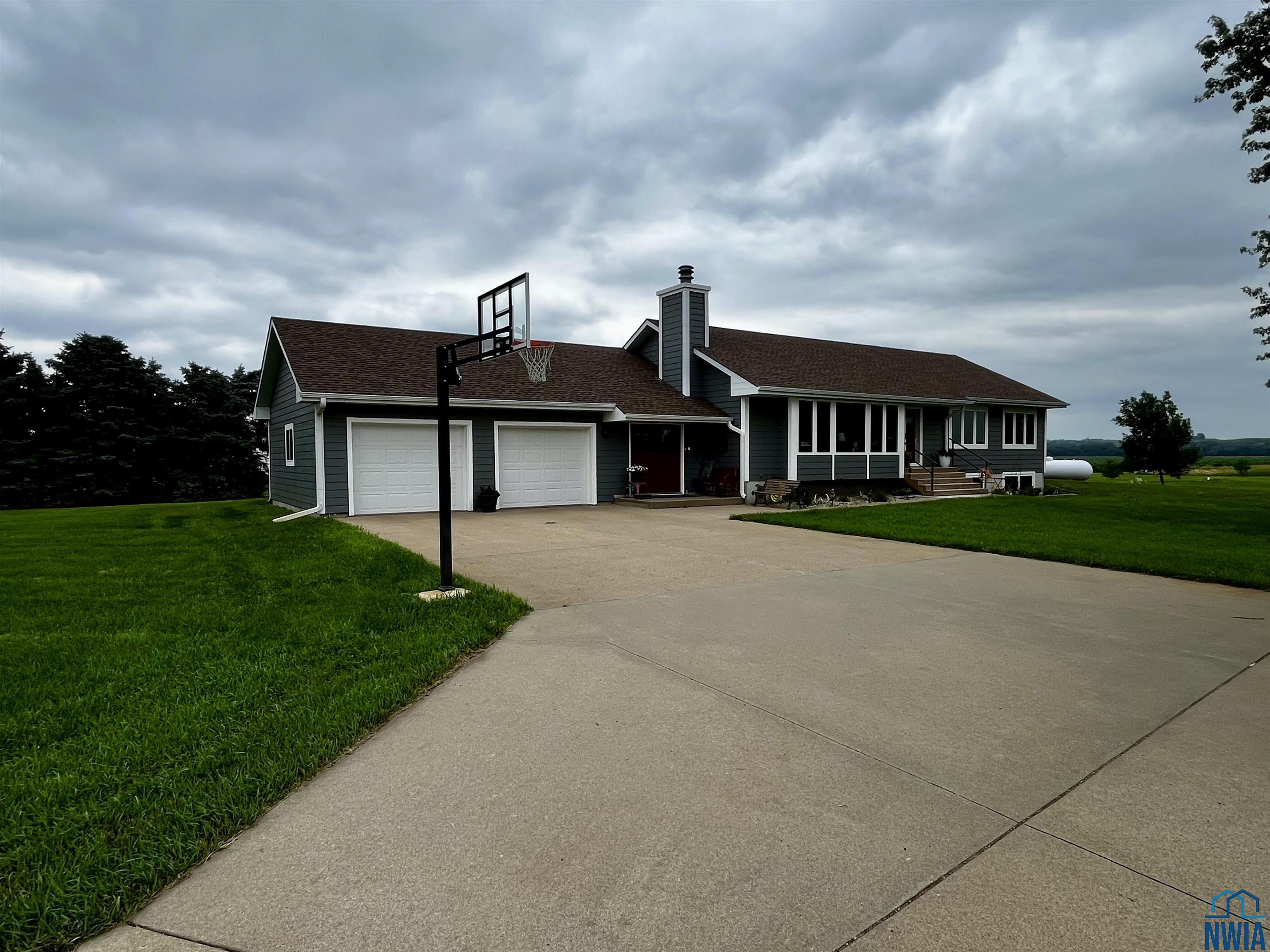 Rare acreage listing in southern Union County just outside of Jefferson. This acreage has it all including a 28X48 detached shed currently set up as a wood working shop with both heat and AC! This home boasts a large main floor with 1710 sq feet and an unfinished basement. The living room has large windows for ample daylight, wood burning fireplace and opens to the spacious dining. Just off the dining is the kitchen with a pantry, plenty of cabinet storage and brand new vinyl plank flooring. This new flooring runs throughout the kitchen, 3/4 bath just off the garage for easy access and the laundry room. The laundry room has two closets, built-in lockers and shelving perfect for laundry baskets. On the opposite end of the house you’ll find two nice sized bedrooms that share a full bath. Each bedroom has a large window, double closet and ceiling fan. The master suite is oversized with a 3/4 bath and double closet. The lower level is unfinished and ready for your custom touch! Lots of new throughout the home including windows in 2023. In 2024 they replaced the siding, furnace, water heater, and water softener. Come enjoy acreage living on this 5 acre property with plenty of room for expansion!