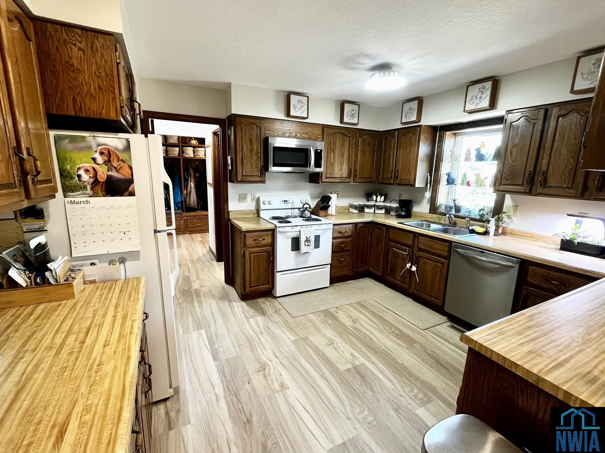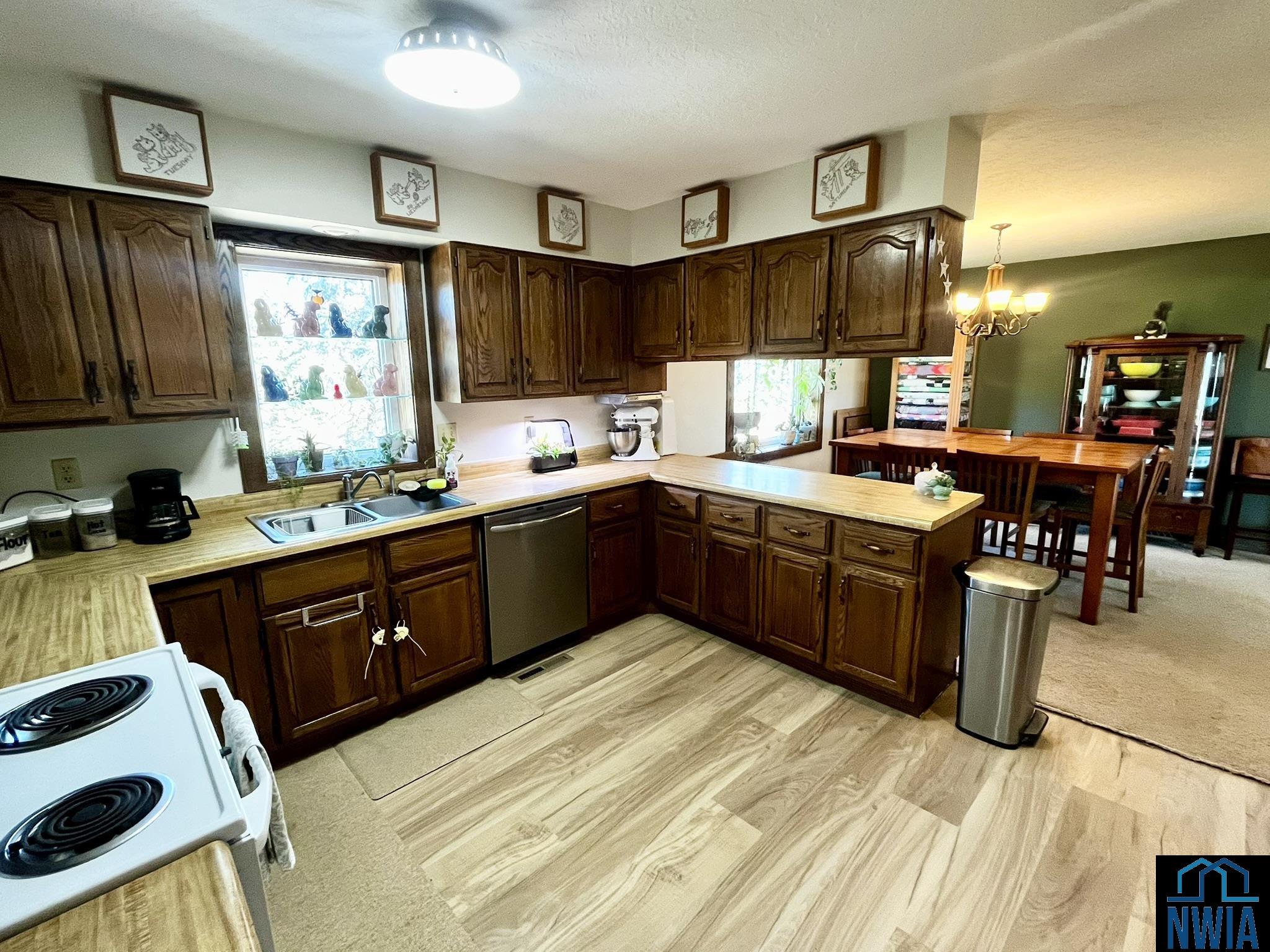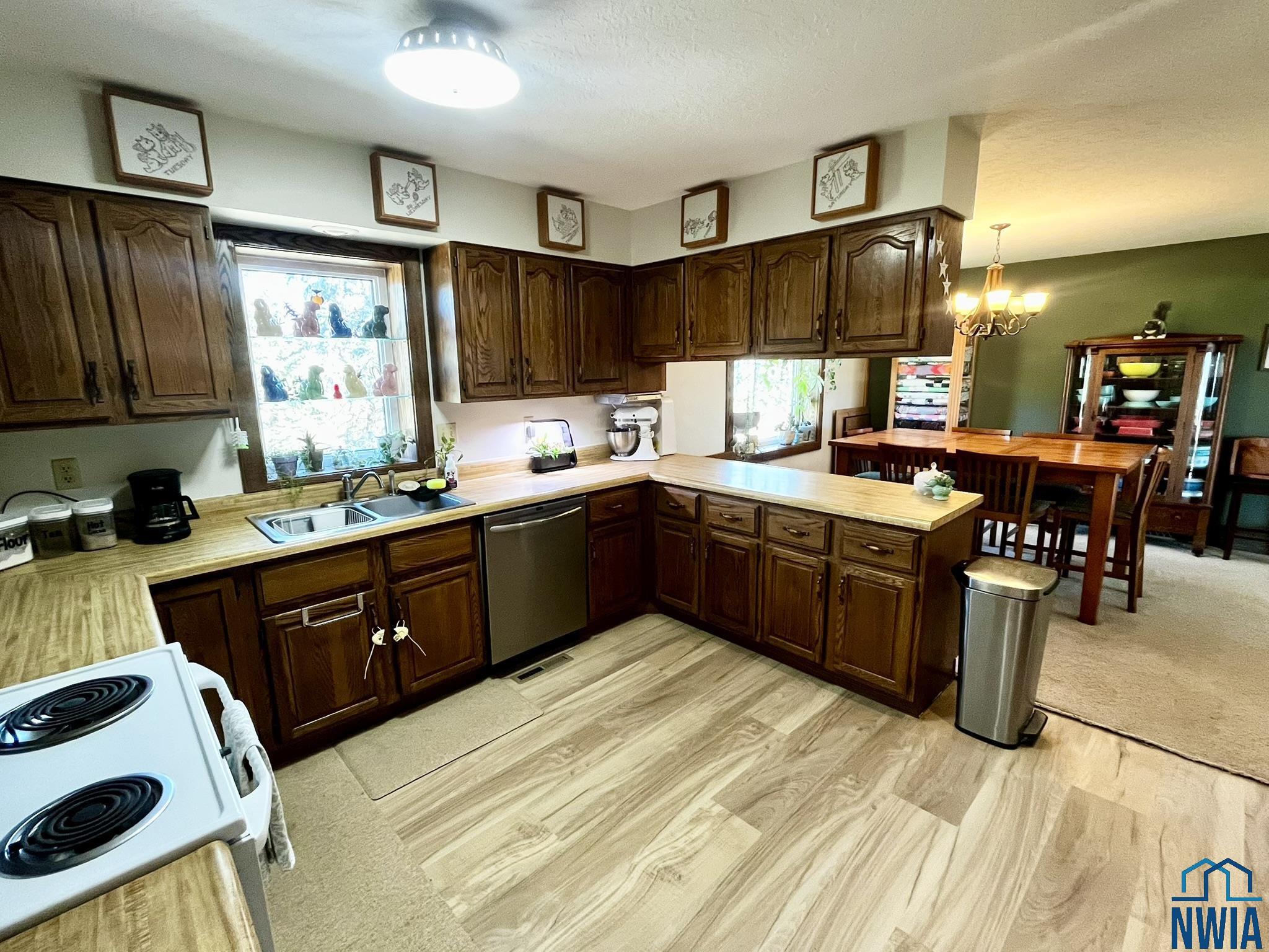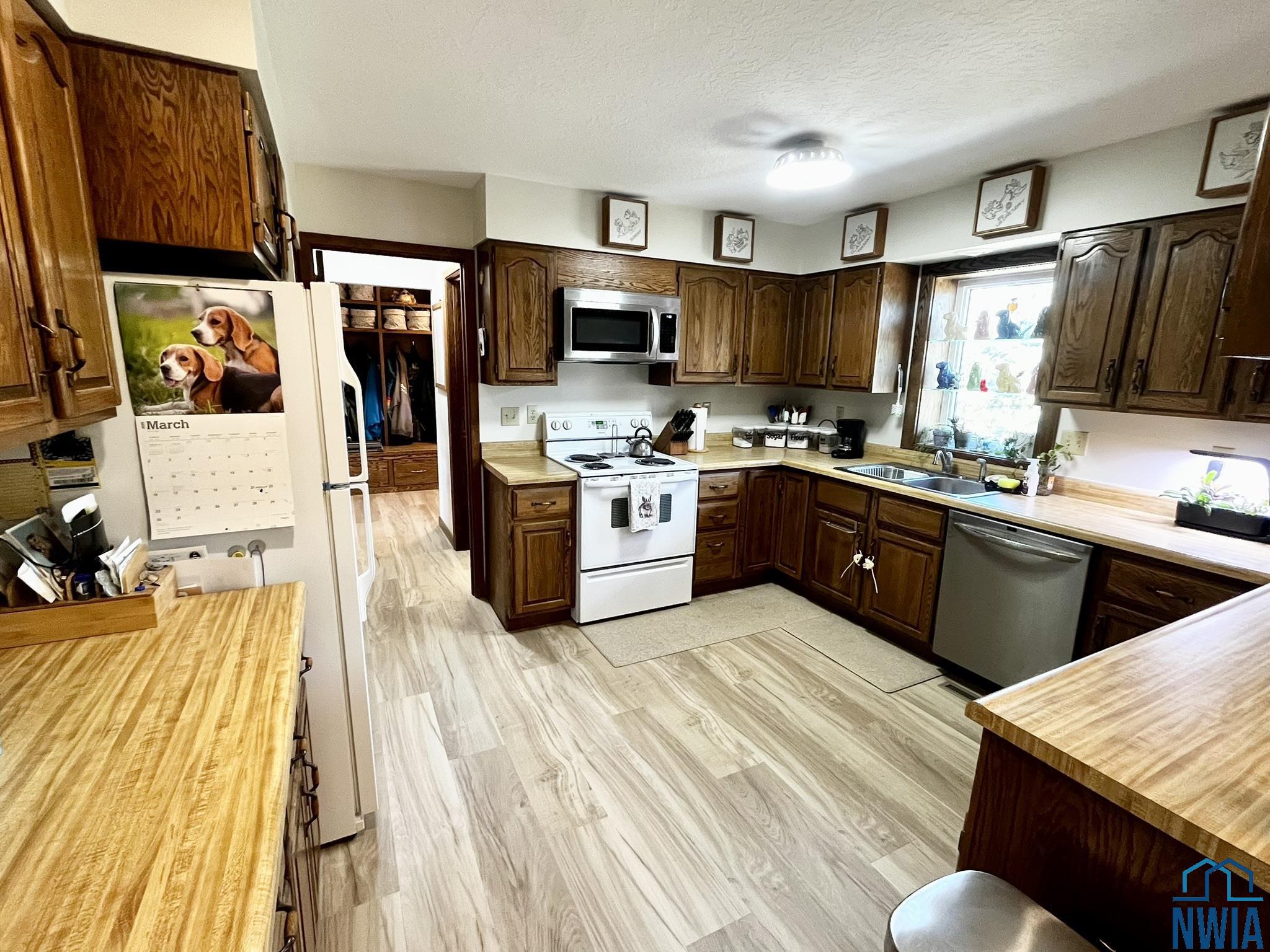 Rare acreage listing in southern Union County just outside of Jefferson. This acreage has it all including a 28X48 detached shed currently set up as a wood working shop with both heat and AC! This home boasts a large main floor with 1710 sq feet and an unfinished basement. The living room has large windows for ample daylight, wood burning fireplace and opens to the spacious dining. Just off the dining is the kitchen with a pantry, plenty of cabinet storage and brand new vinyl plank flooring. This new flooring runs throughout the kitchen, 3/4 bath just off the garage for easy access and the laundry room. The laundry room has two closets, built-in lockers and shelving perfect for laundry baskets. On the opposite end of the house you’ll find two nice sized bedrooms that share a full bath. Each bedroom has a large window, double closet and ceiling fan. The master suite is oversized with a 3/4 bath and double closet. The lower level is unfinished and ready for your custom touch! Lots of new throughout the home including windows in 2023. In 2024 they replaced the siding, furnace, water heater, and water softener. Come enjoy acreage living on this 5 acre property with plenty of room for expansion!