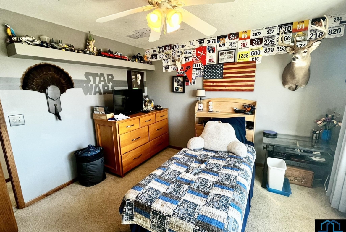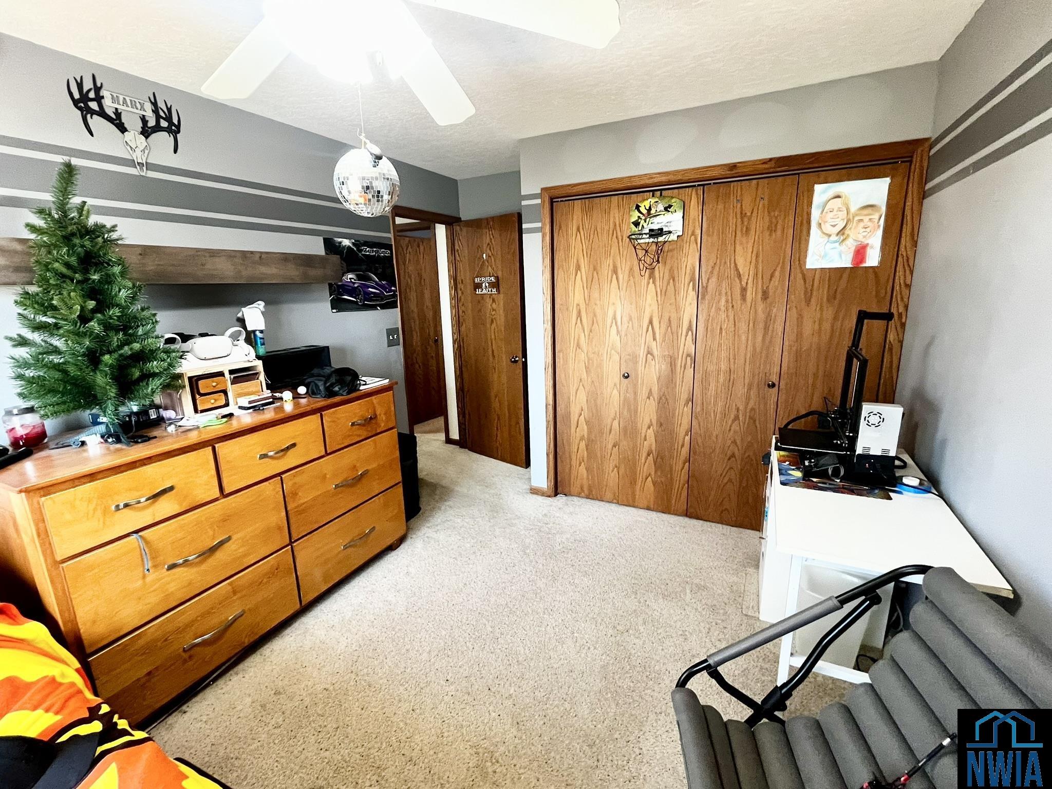 Bedroom | Main | 12'9X10 | carpet, double closet, ceiling fan, large window |