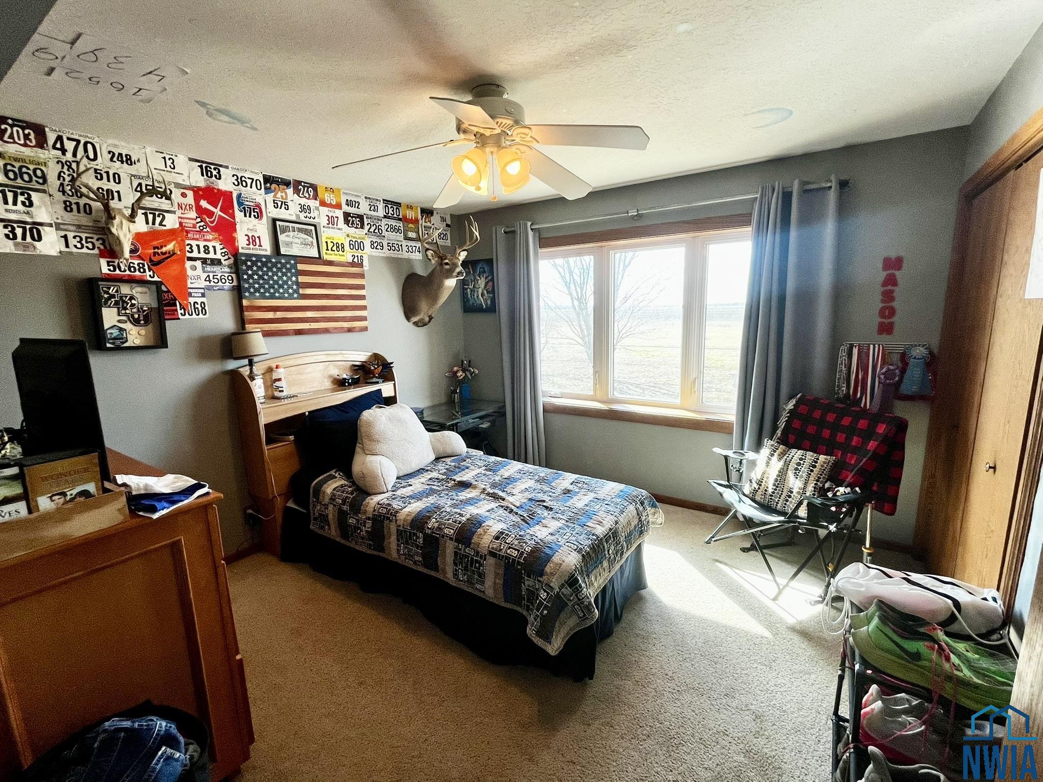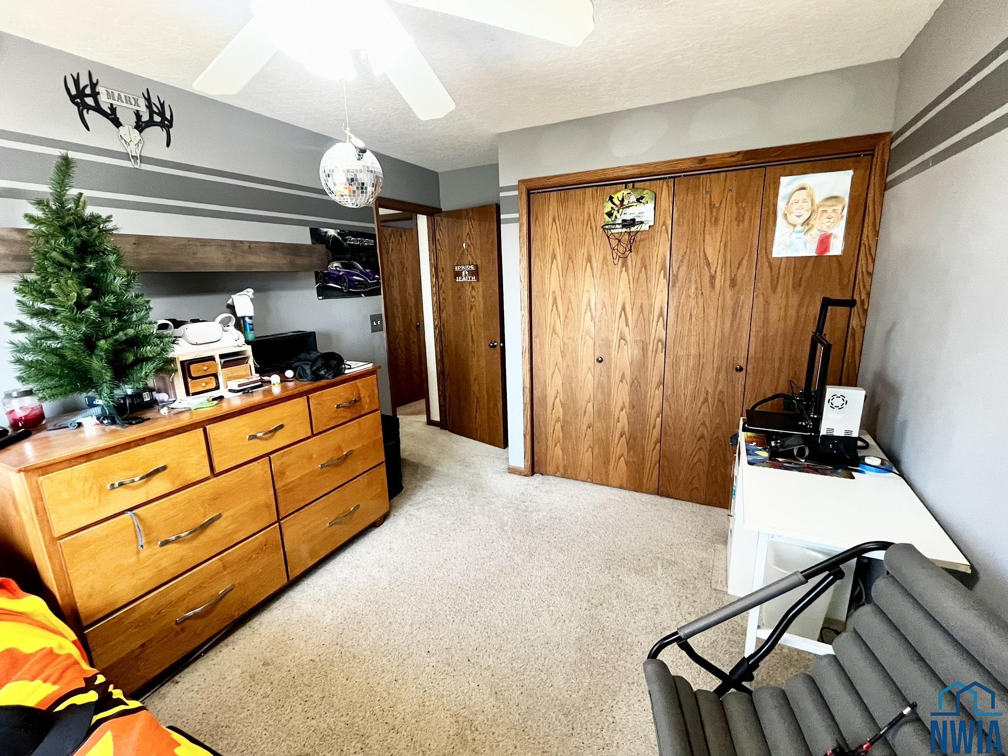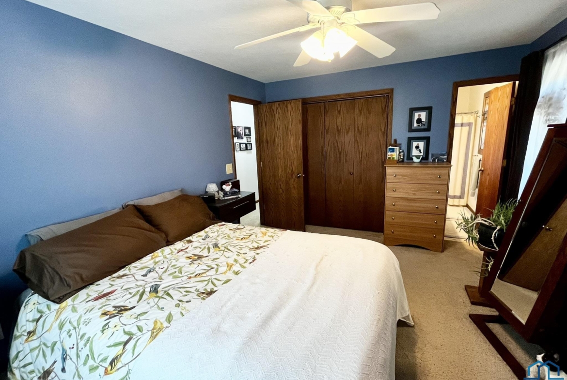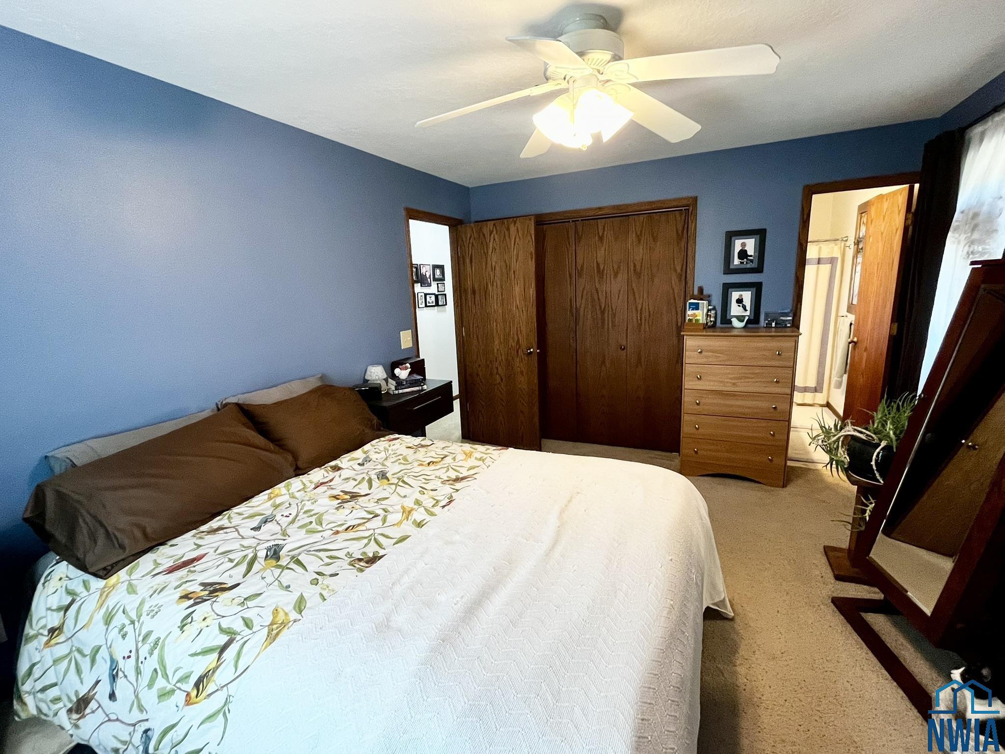 BedroomMain12'9X10carpet, double closet, ceiling fan, large window