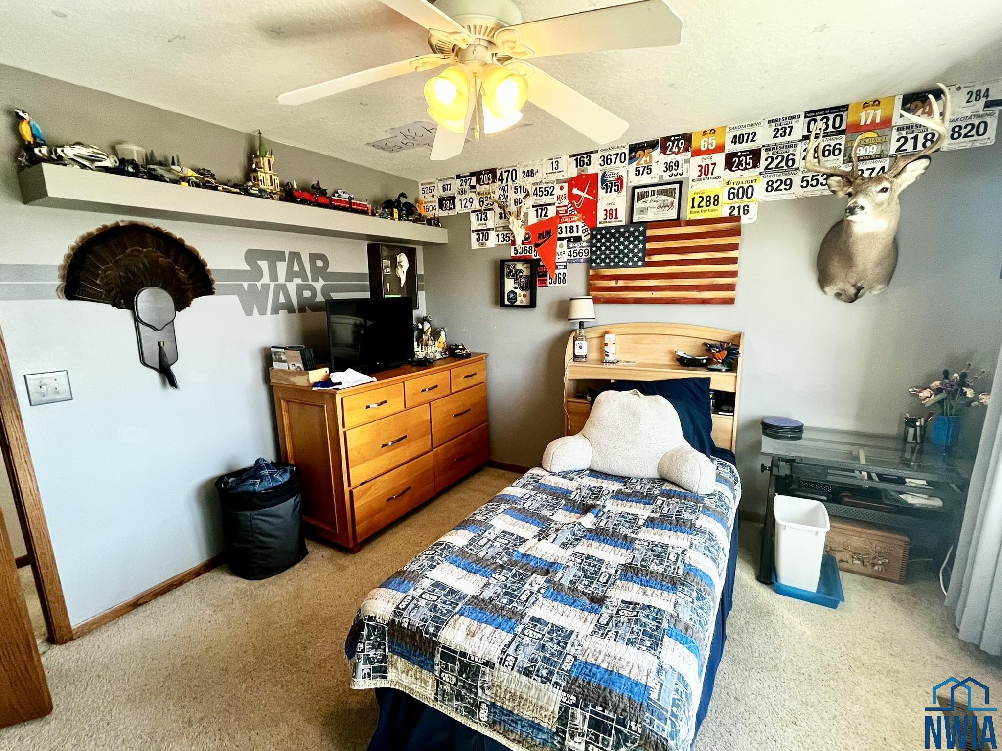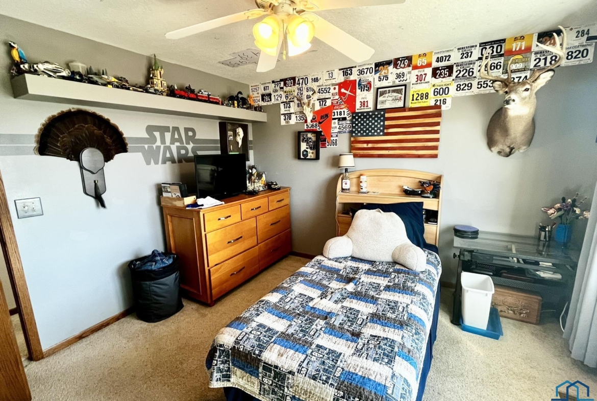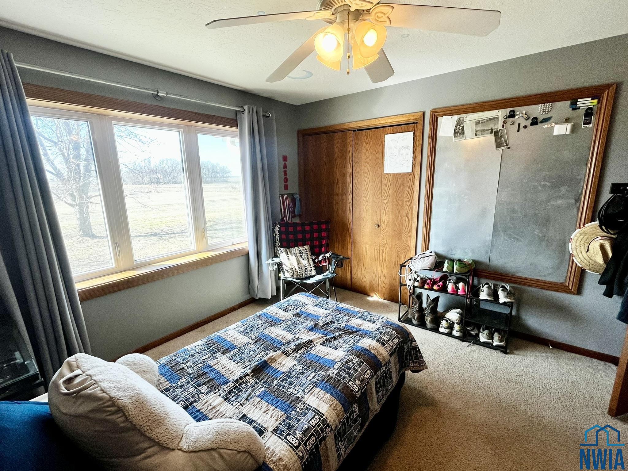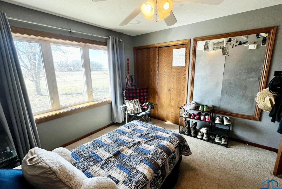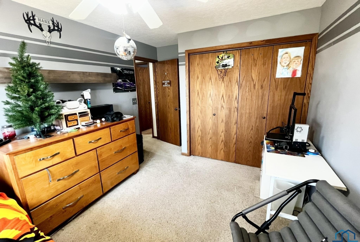 BedroomMain12'9X10carpet, double closet, ceiling fan, large window