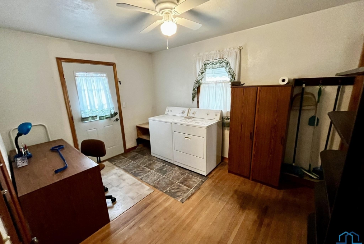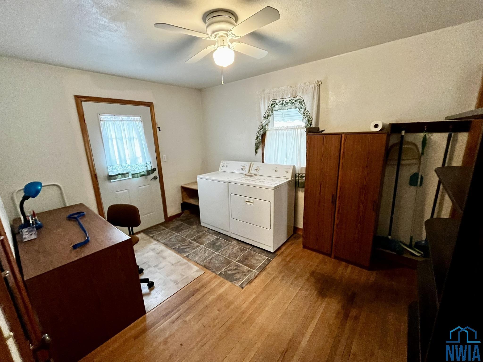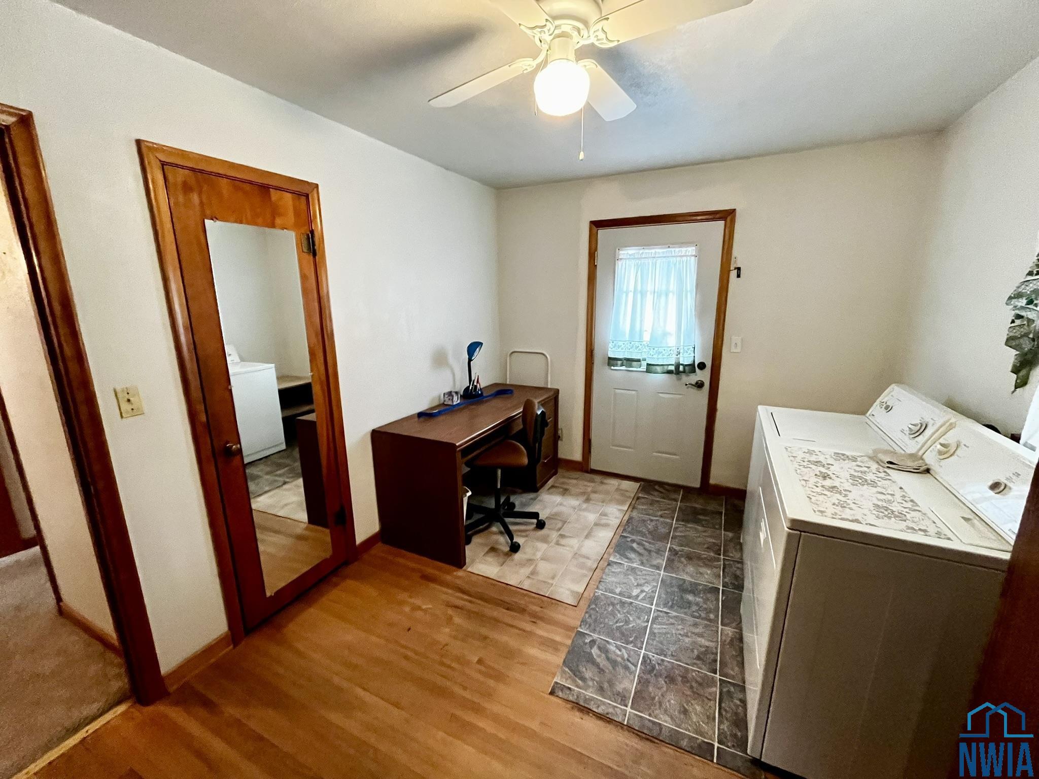 BedroomMain12'3X9'5wood floor, carpet, currently laundry and desk