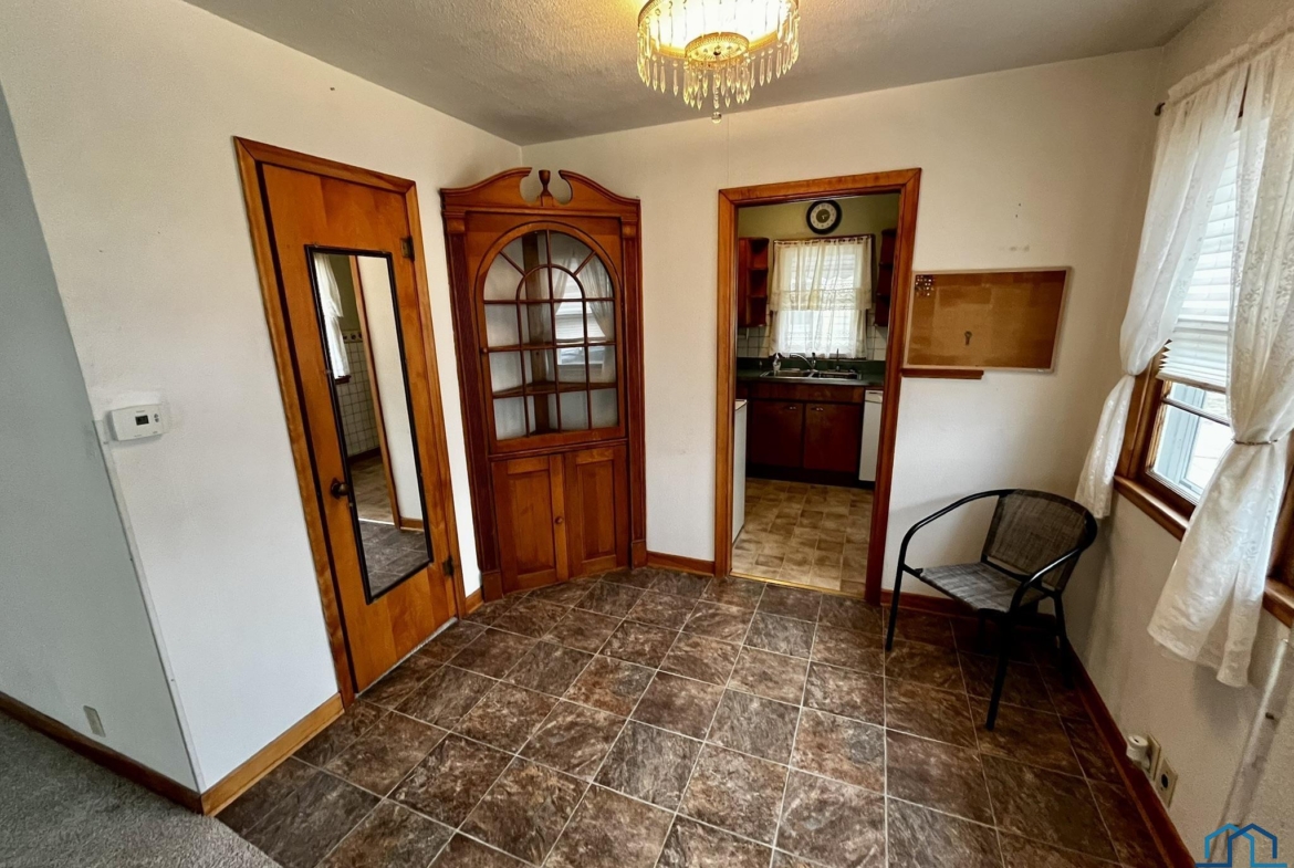 DiningMain7'5X9vinyl floor, corner hutch, coat closet