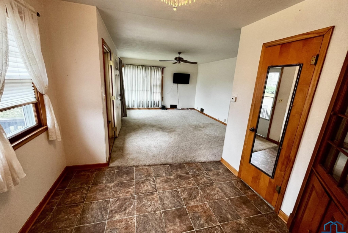Here is a charming 2 bedroom, 1.75 bath ranch home on Main Street in Elk Point! The living room boasts ample natural light with two large windows and shares an open concept with dining. Just off the dining is a quaint kitchen with the appliances included. Two bedrooms on the main share a full bath. One of the bedrooms has been renovated to fit a desk, laundry and pantry storage just off the kitchen as well as door to the back deck. The downstairs is ready for your custom touch and some sweat to build your own equity into the house. There is a 3/4 bath with laundry hookups as well as a den with a walk in closet, family room and ample storage. This home also features a two stall detached garage. This property is selling as-is.