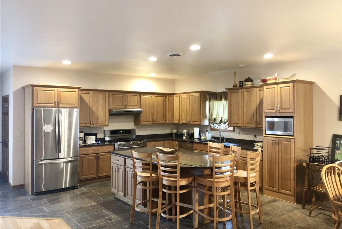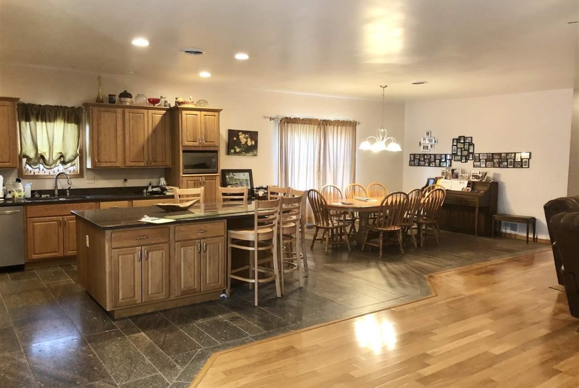 Check out this 4 bedroom, 1.75 bath home built slab on grade. Master bath with 10’X6’6 walk in closet and master bath. The kitchen, dining and living share a spacious open concept. The kitchen features oak cabinetry, stainless steel appliances and granite countertops. Granite flooring flows throughout the foyer, kitchen and dining. The living room has wood laminate flooring. Three spacious bedrooms share a 3/4 bath. In-floor heat throughout the home and electric forced air furnace. Construction just finished on a 30X60 addition which includes a 30X30 garage and a 30X30 multi purpose room. This room could be a party room, second living room or convert it into a shop. The options are endless!
